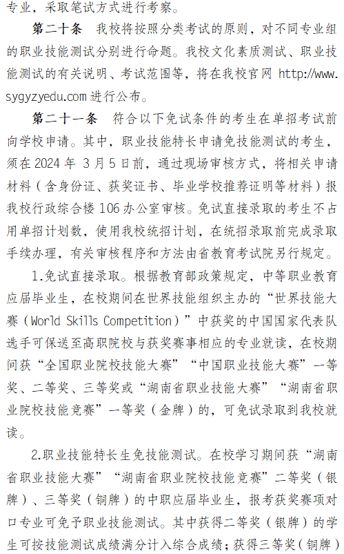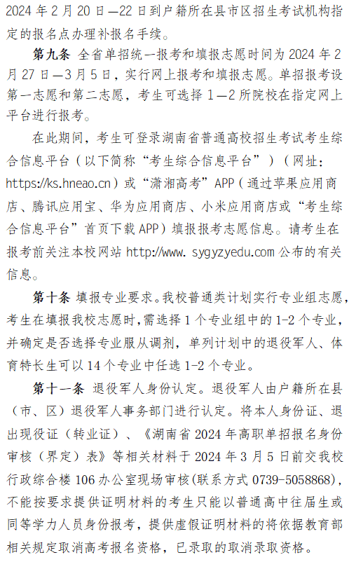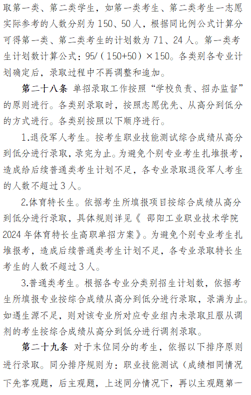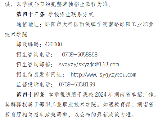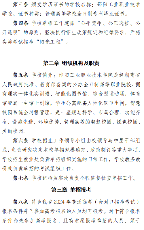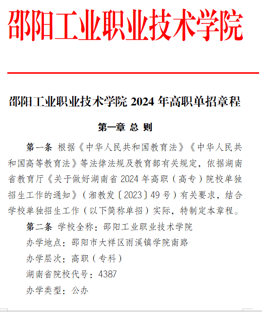 邵阳工业职业技术学院2024高职单招章程